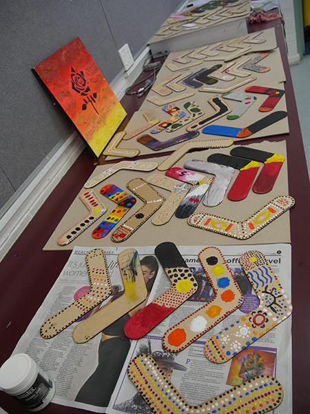 Activities included rock painting, boomerang painting, cupcake decorating with icing in the Aboriginal flag colours, Dreamtime story telling, a free kangaroo sausage sizzle and the collaborative painting of a beautiful mural designed by Aboriginal student Lynette Inman!